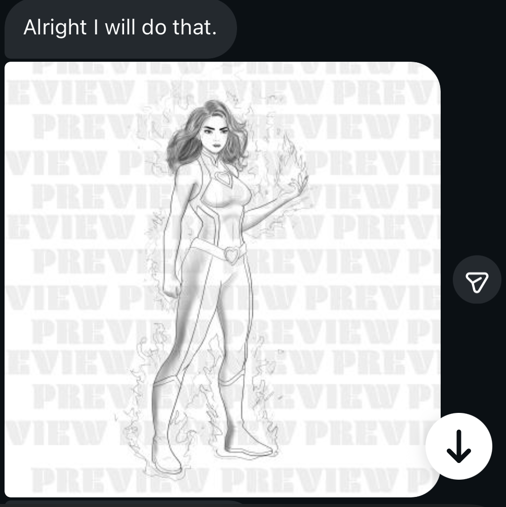 At this point I’m pretty sure that X-Girl is the real artist. They even know the original brief, and show me a picture of the PDF document. Insta-Girl has no clue and is still sending me sketches that are now just copies of art I already have.